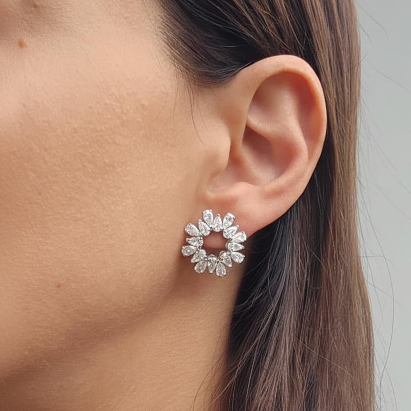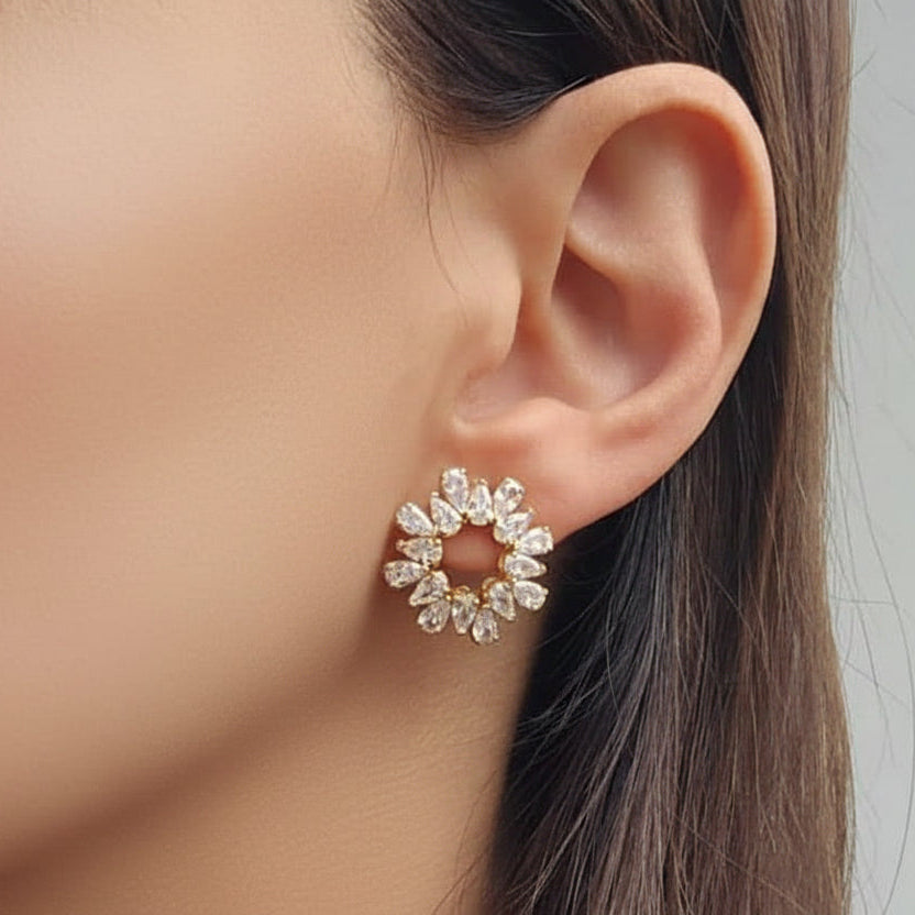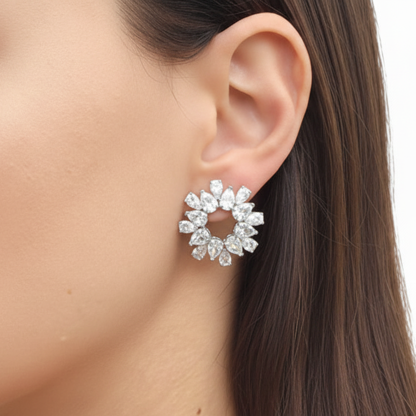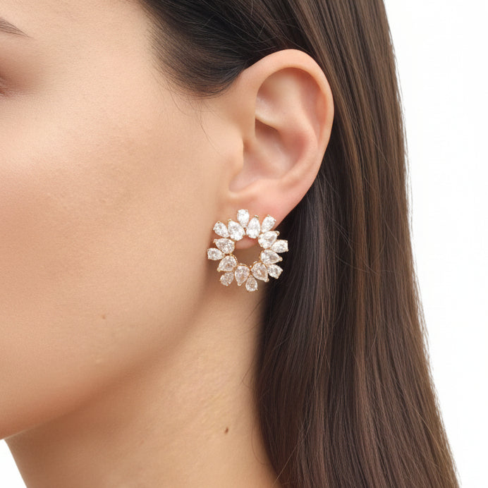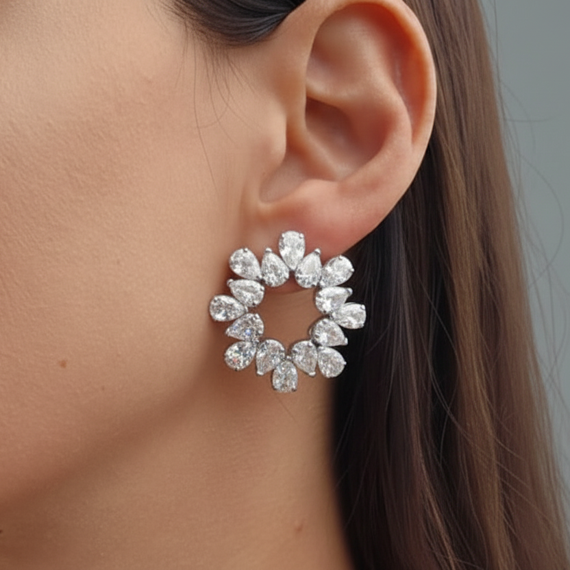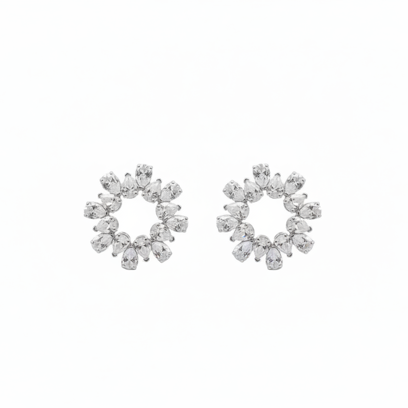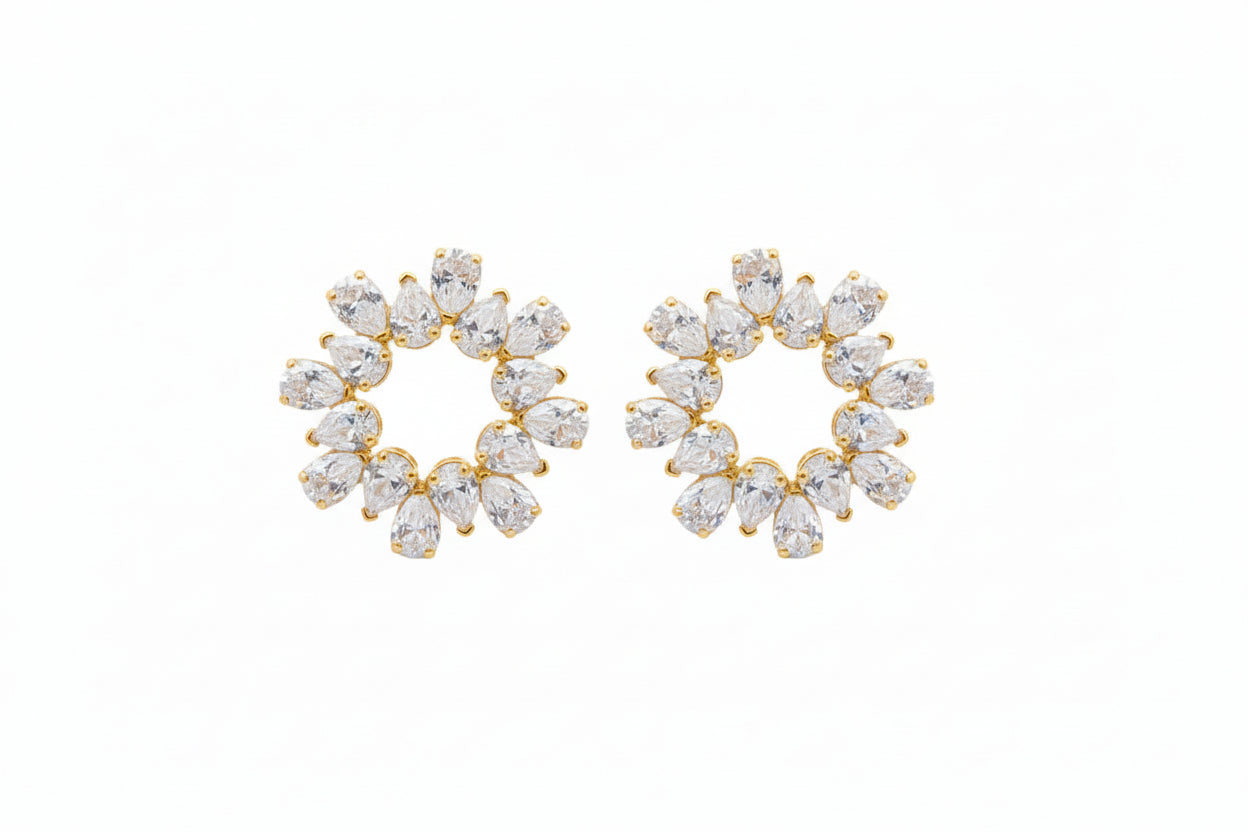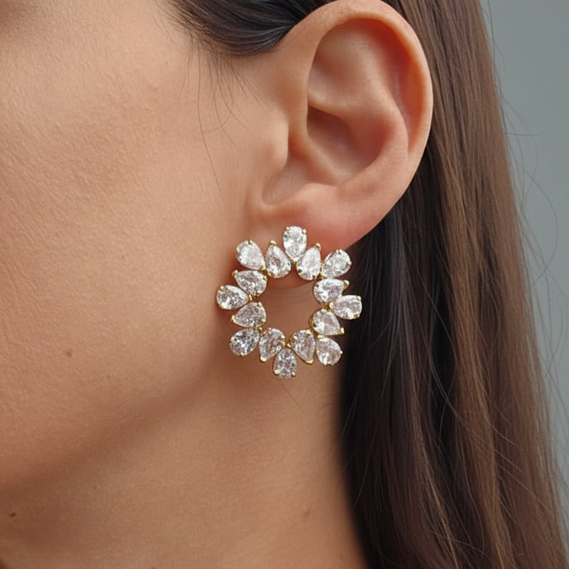 - Elegant Design: Circular arrangement of sparkling crystals with elongated tear drop stones
