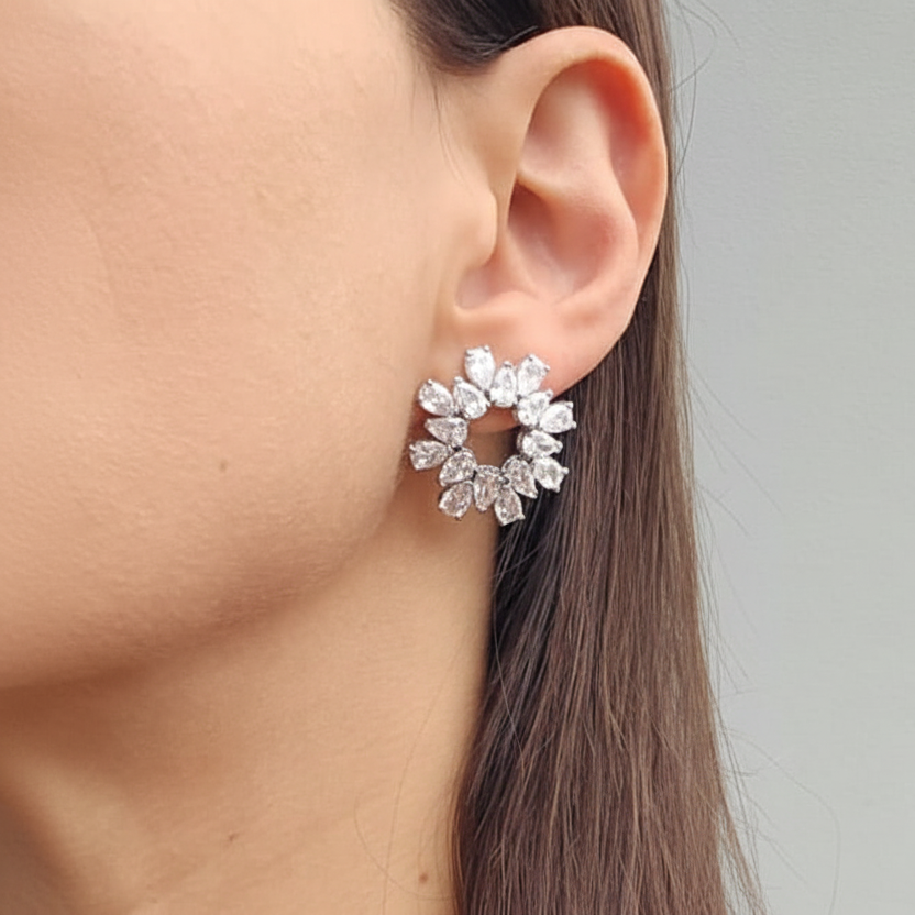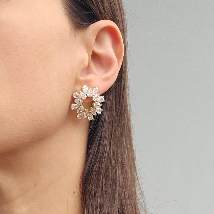 The Zurelle Earrings offer a dazzling and sophisticated look, perfect for adding a touch of glamour to any occasion. With their exquisite design, featuring a radiant circle of sparkling crystals and elongated tear drop stones, these earrings create a stunning effect of light and movement, ideal for both classic and contemporary styles. Their luxurious yet timeless design makes them a perfect choice for evening events, weddings, or any special occasion where you want to stand out with elegance.